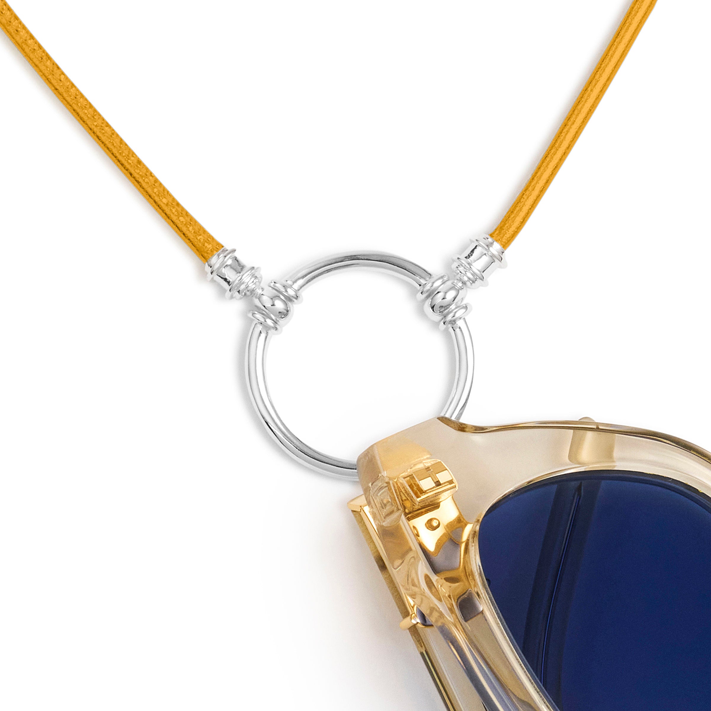 LA LOOP created an entirely new category of accessory—where the elegance of a necklace meets the function of eyewear. In 1999, in New York City’s Jewelry District, we introduced our signature design: a sleek chain paired with a simple silver circle engineered with patented swiveling hinges that rotate 360 degrees. The result was effortless and innovative—making LA LOOP the original necklace for eyewear.