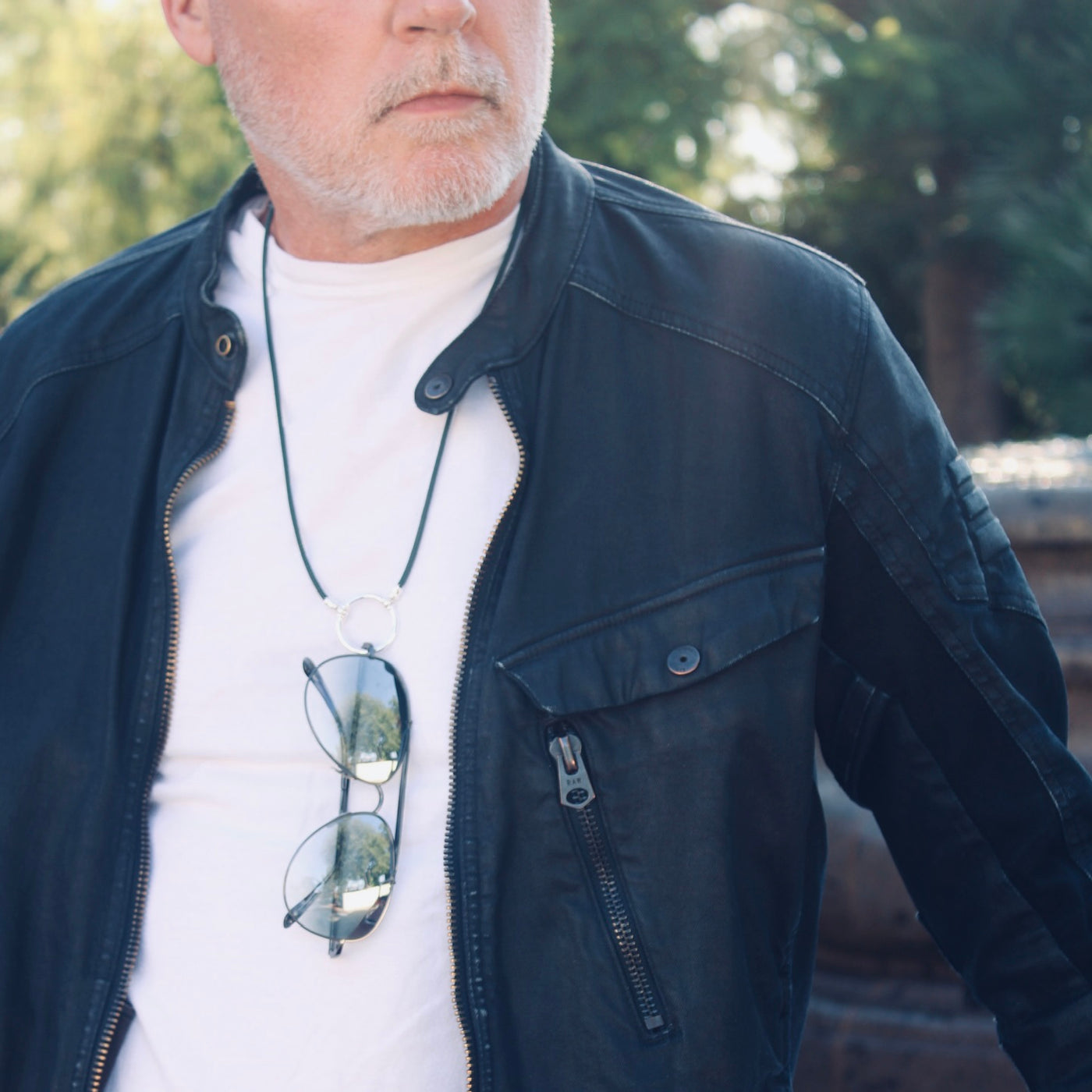 clean lines of a necklace with a simple silver circle crafted to hold glasses. Back in 1999 in the